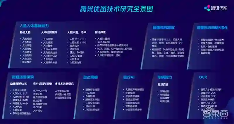 腾讯优图的技术研究以“计算机视觉AI”为基础,全面输出AI能力,着力成为腾讯云与智慧事业群的底层支撑。