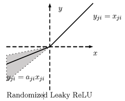 RReLU(Randomized Rectified Linear Unit)是 LReLU 的随机版本。它最早出现在Kaggle NDSB[1]比赛中,定义如下