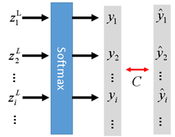 于是, 可以被理解为 为第 类的概率。因此,DNN的输出 应该也是一个向量 ,且需要与 尽可能的接近。为了描述这两个分布的相似性,于是就引入了Cross Entropy Loss,其定义如下: