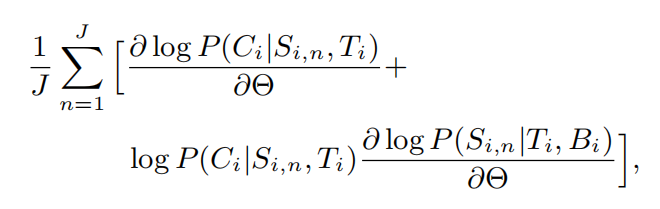 为了计算梯度,需要找到 (Ti, Bi) 对应的所有分段 Si,但这是很难实现的。因此作者采用蒙特卡洛采样方法来近似 dLi/dθ。假设有 J 个样本,那么 dLi/dθ的近似为:
