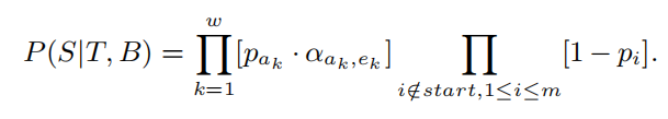 用 start 表示显著性分段的起始位置,用 pi 表示 P(li=1),于是 P(S|T,B) 可以表示为: