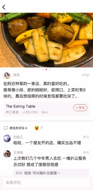 「附近的餐厅」功能可以像刷“朋友圈”一样,刷“美食圈”,种草、评论自己心仪的餐厅,和朋友互动。在「找餐厅」页面,还可以根据用户想去的餐厅等要素,个性化推荐可能感兴趣的餐厅。当然,再也不纠结“吃什么”,仅限于广州地区的部分微信用户。说好的“好事情,要大家一起分享”呢?