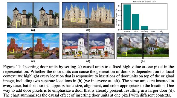 也可以通过强制单元和插入这些功能到场景中的特定位置来学习GAN的操作。图11显示了在教堂场景中插入20层门单元的效果。