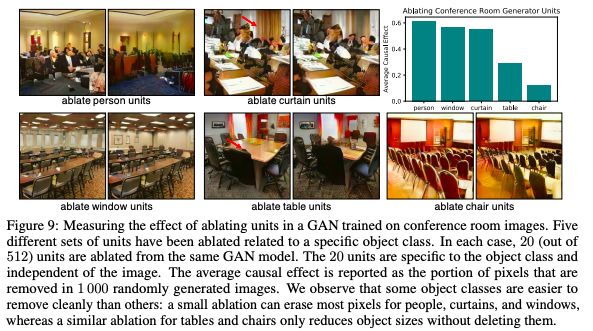 图9:测量在会议室图像训练的GAN中消融单元的效果