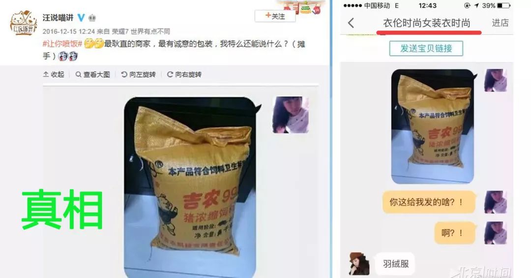 最后,拼多多又继续“打假”,指出“一位女子在拼多多上网购了一件特价羽绒服之后,收到一包猪饲料”一事也是谣言。