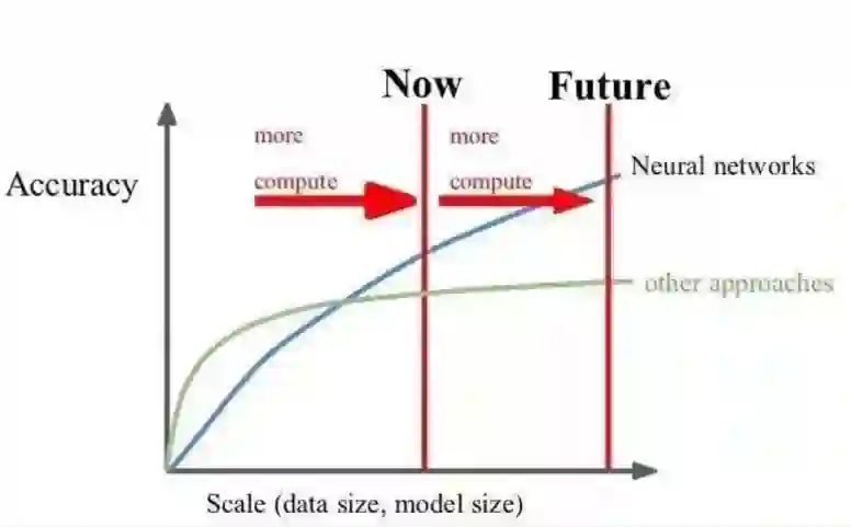 根据Jeff Dean的预判,随着数据规模的不断扩大,未来深度学习算法的精度也将不断提升。