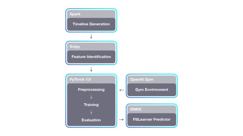 这个管道允许 Horizon 扩展到 Facebook 的数据集。对于策略学习(例如使用 OpenAI Gym), Horizon 可以选择在一个闭环中将数据直接提供给训练过程。