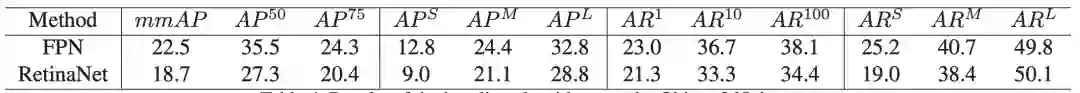 Results of the baseline algorithms on the Objects365 dataset