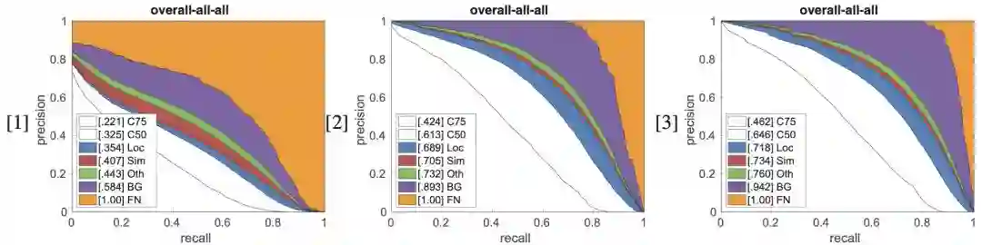 对于注释的精度,如果目标类别错误或注释边界框不准确,则考虑假正。Objects365的精度明显高于COCO,分别为91.7%和71.9%。