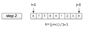 置换完成后,判断排序是否结束,当i和j相邻时,排序结束。