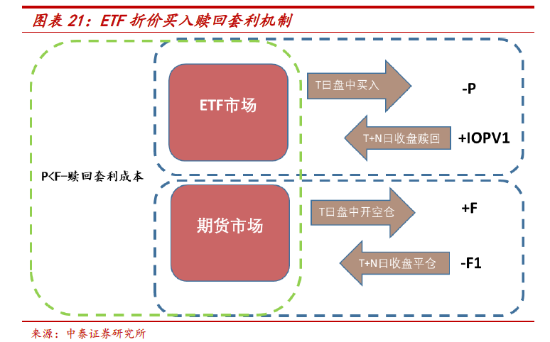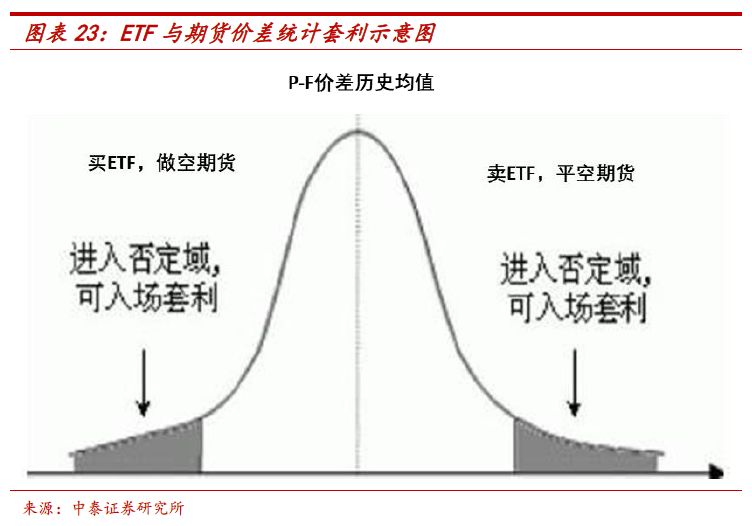 如果其申购赎回对价是以净值来计算,那么其存在折溢价套利机制,如果其申购赎回是以T+1日的代买代卖价格计算,可用ETF和期货的价差进行统计套利。