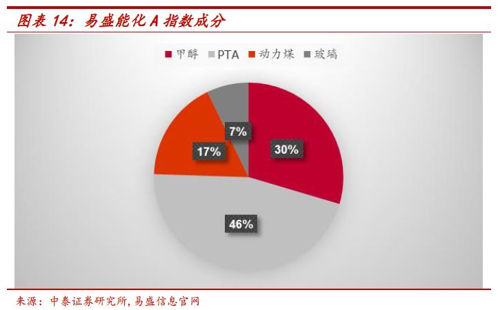 易盛能化A指数选取能源化工中成交活跃的品种,当前持仓为PTA、甲醇、动力煤和玻璃。