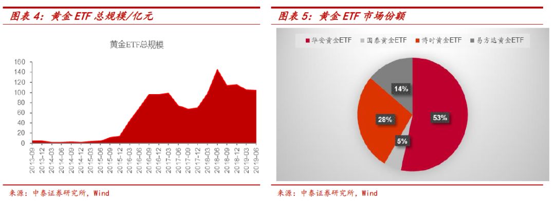 在4只黄金ETF中,华安黄金ETF的份额占比最高达到53%。