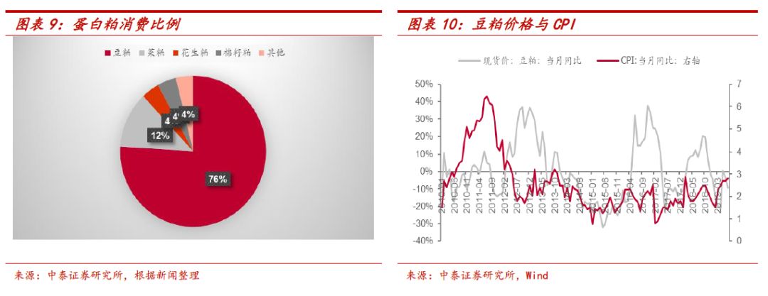 在蛋白粕类的消费中,豆粕占到70%以上,占据绝对主导地位。