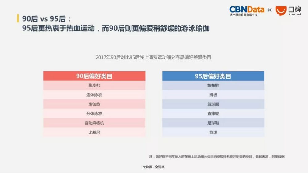 比如2017年沙拉的外卖订单量增幅高达145%,高于外卖整体订单量。而线上运动商品也是稳步增长,并且消费主力为90后和95后。