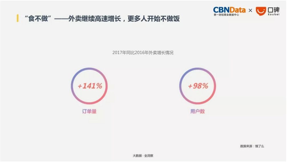 2017年外卖订单量比去年增长高达141%,注册用户数增长达98%。