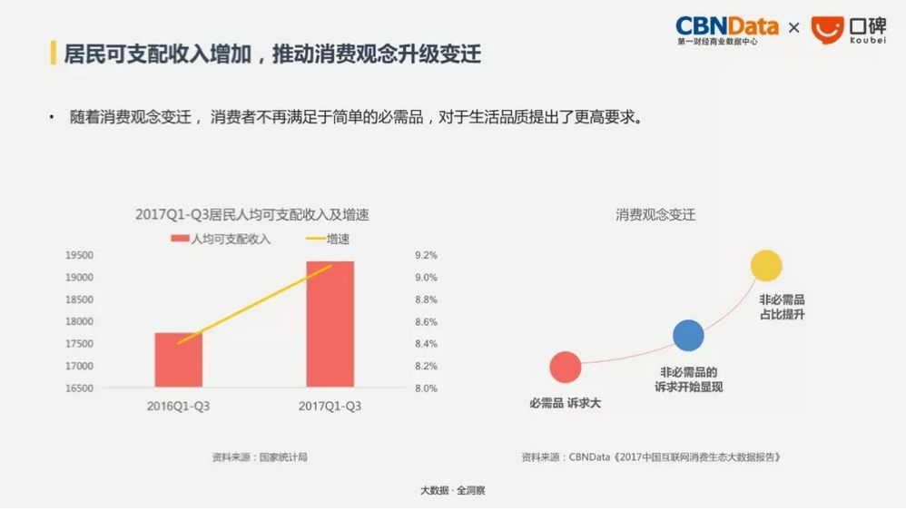 1月底,CBN Data第一财经商业数据中心联合阿里巴巴旗下本地生活服务平台口碑,发布了《2018生活消费趋势报告》,基于口碑、阿里、淘票票、饿了么等2015-2017年数据,全方位分析国民生活消费最新趋势。