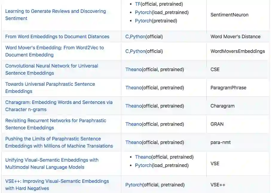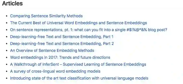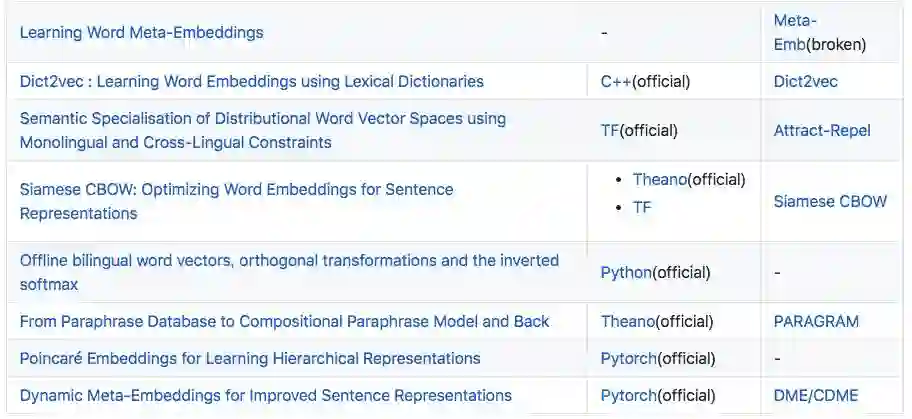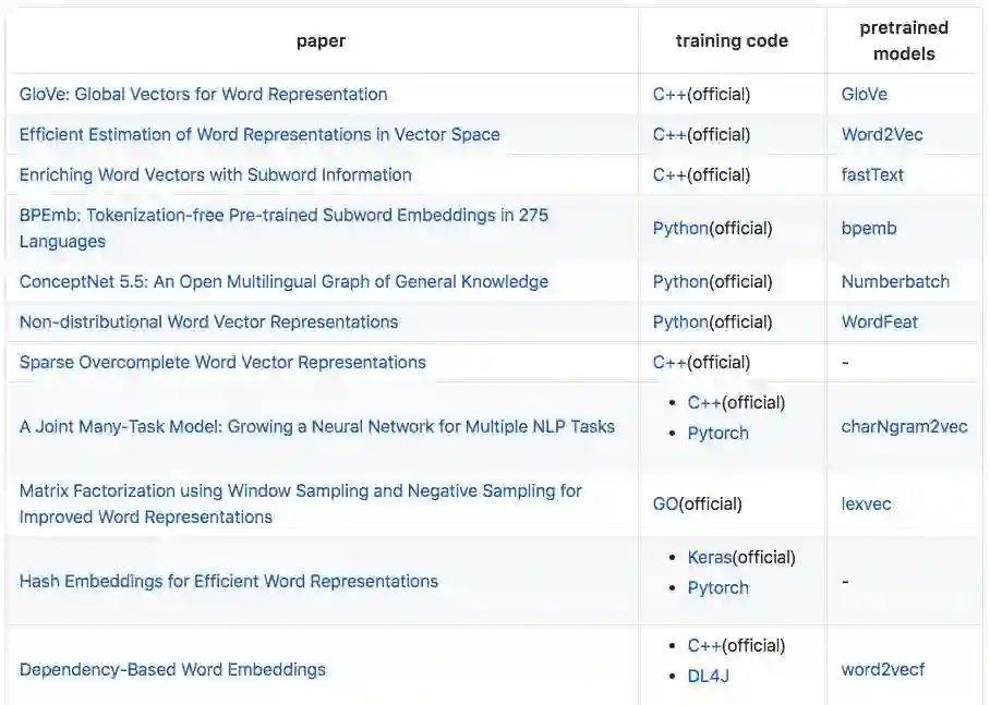 这部分 Separius 介绍了 19 篇相关论文,包括GloVe、word2vec、fastText 等预训练模型: