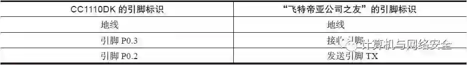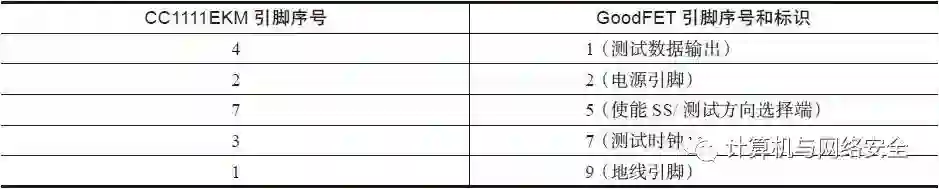 表6 CC1111EMK工具与GoodFET工具的连线对照表