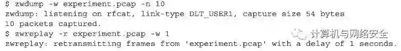 Zwreplay工具接受将一个libpcap数据包捕获文件作为输入参数,然后Zwreplay工具会重新发送数据包中的每一个数据类数据包中的有效载荷内容。这种技术在Z-Wave网络中主要用于实验,或是实验随后的数据包捕获能力,或是作为一个自动重复发起攻击状态的机制。