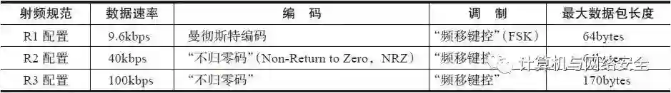 从“国际电信联盟”的这个规范中,我们得知Z-Wave的规范共分为3个参数配置方案,分别称为R1配置、R2配置和R3配置,每一个Z-Wave设备都是根据自己的需要,按照三个无线射频规范中的一个进行操作。这些射频规范定义了物理层无线调制方式、编码机制,以及数据的速率,如表2所示。有消息称,最慢的Z-Wave“R1配置”,正在或已经被“Z-Wave联盟”拒绝通过,虽然遵从该协议的新设备仍在销售的过程中使用此版本的配置。