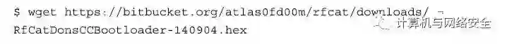 随后,从https://bitbucket.org/atlas0fd00m/rfcat/downloads网站上下载RfCat项目中最新版本的CC1111EMK固件程序。选择文件名以“RfCatDonsCCBootloader-”作前缀,后面跟着版本号,并以“.hex”结束的文件。在这个例子中,我们使用版本号为140904的文件进行创建,其命令格式如下: