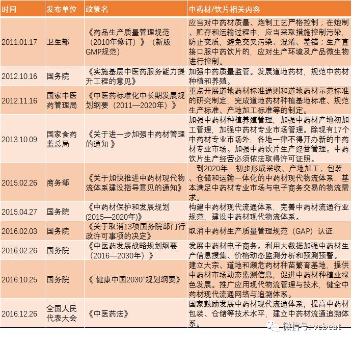 法规方面,《“健康中国2030”规划纲要》指出,要建立大宗、道地和濒危药材种苗繁育基地,提供中药材市场动态监测信息,促进中药材种植业绿色发展。推广应用现代物流管理与技术,健全中药材现代流通网络与追溯体系。