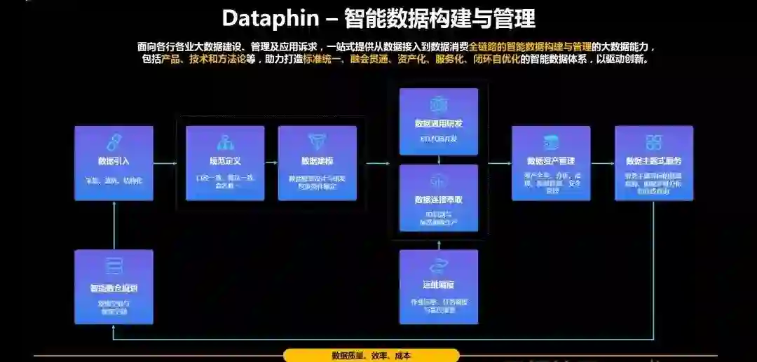 4、数据中台PasS层Dataphin。PasS层产品Dataphin如引擎般存在,下到规划数仓,上至输出主题式服务。