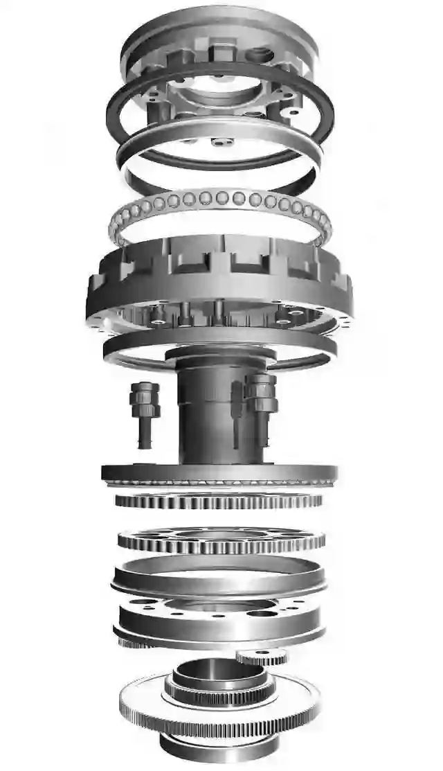 线路能很方便得从减速机中空的部分穿过。这样的设计不仅转矩更大,压缩比更高,接近零侧隙,而且还加载了一组更大的提供更大动量,并免去外部支撑设备的内角支撑轴。这样一来,就进一步节省了成本,简化了最终用户的设计工作。
