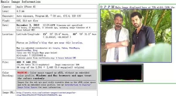 原来,《VICE》杂志无意中透露了该图片的Exif参数。通过数据,警察发现照片中McAfee所在的位置是危地马拉某处。