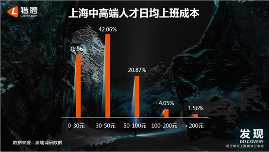 在此次调研发现,42.06%的中高端人才上班日均成本为30-50元,相对上海中高端人才的薪资而言,只占较小的开销。