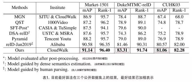智东西3月1日消息,云从科技宣布在跨镜追踪技术上再次取得重大进展,在三大主流ReID数据集Market-1501、DukeMTMC-reID、CUHK03上超过阿里巴巴、腾讯、微软、中科院自动化所等企业与科研机构,创造新的世界纪录。本次云从科技研究团队在三大数据集的两大核心指标mAP与Rank-1准确率上均取得第一,其中在Market-1501数据集上的mAP达到91.14%。