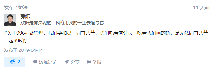 话说回来,郭炜并不反对阶段性的加班或者996。