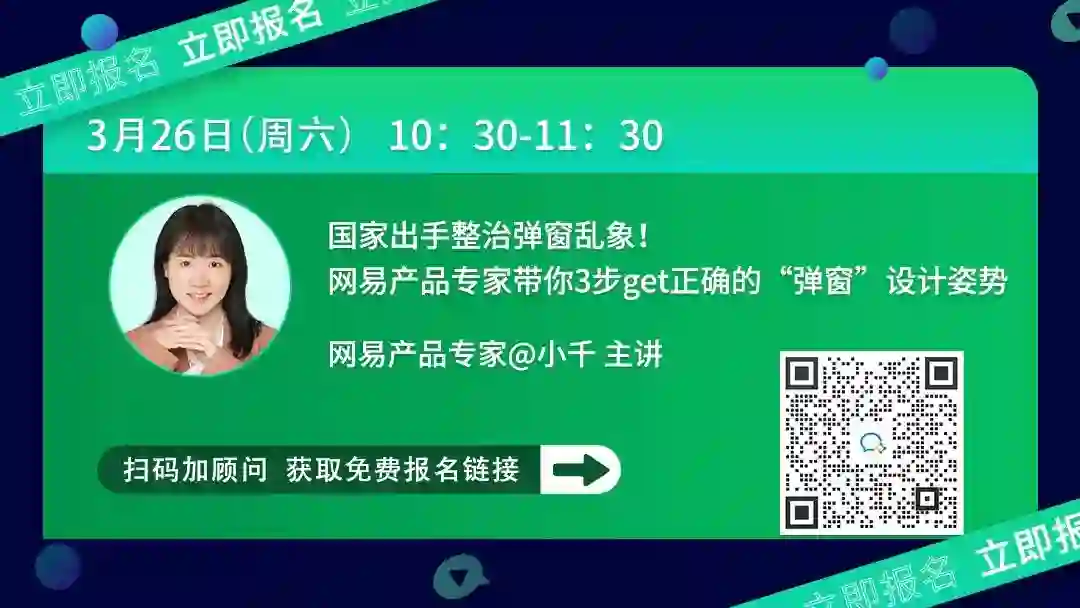 周六10:30,网易产品专家@小千 教你如何设计不让人生厌的“弹窗”,打造良好的用户体验!