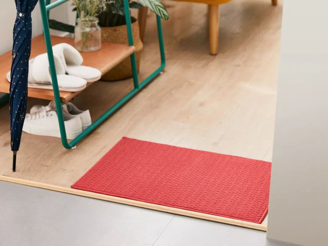 临近春节,这种大红色地垫就很适合铺在玄关。既可以营造温馨氛围,看着就暖意融融,而且颜色较深,落上灰也不显脏。
