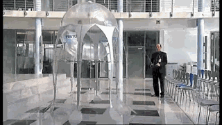 另外,提到水母机器人,更多人最先想到的可能不是这个“新贵”,而是美国Festo公司之前打造的 “巨无霸”-“空中水母”。它长着8只触角,由于机器人体内充满氦气,所以能像水母漂浮在海里一样漂浮在空气中,看起来非常漂亮。