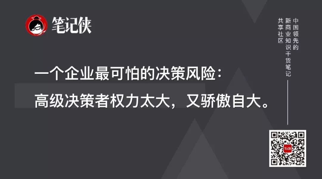 回头总结来看,一个企业最可怕的决策风险就是:高级决策者权力太大,又骄傲自大。