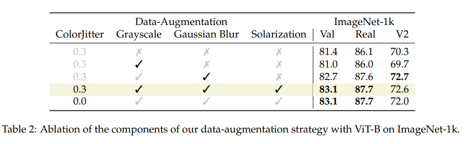 在表 2 中,他们提供了对不同数据增强组件的消融实验结果。