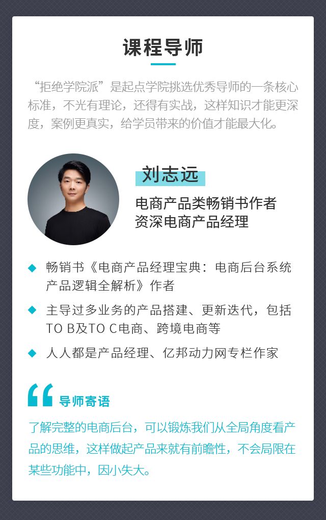 为了帮助这些产品新人快速摸清电商后台系统的产品逻辑,起点学院邀请到了出版过业内第一套后台产品书籍的@刘志远 老师,共同发起《3周掌握电商后台产品设计》学习计划!