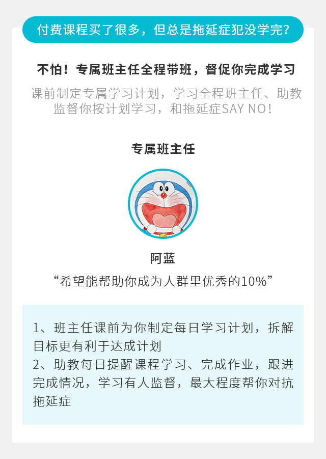 - 课程设有班级微信群,报名后请登录起点学院app或PC端登录vip.qidianla.com,进入课程,在课程公告中根据提示找班主任报道