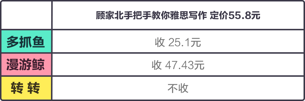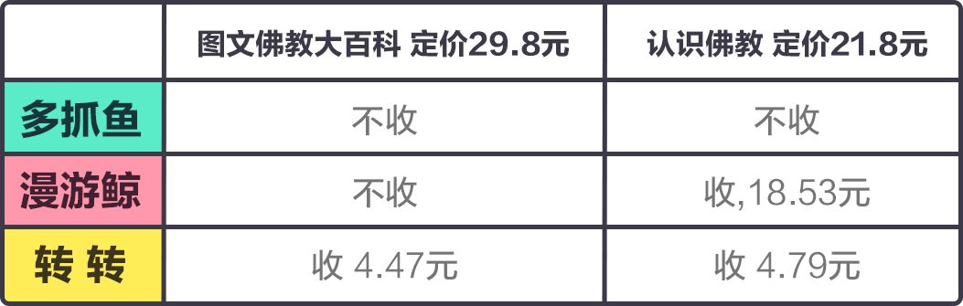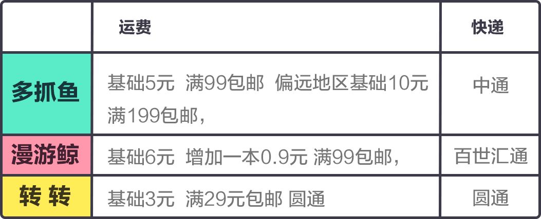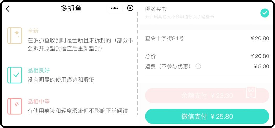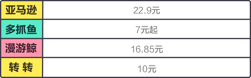 【多抓鱼】:价格依据品相而定,从品相中等、品相良好到全新依次增高,通常在原价的1.9~9折之间浮动。若使用卖书所得的钱买书可在原有优惠基础上享受8.8折,并可抵扣运费。