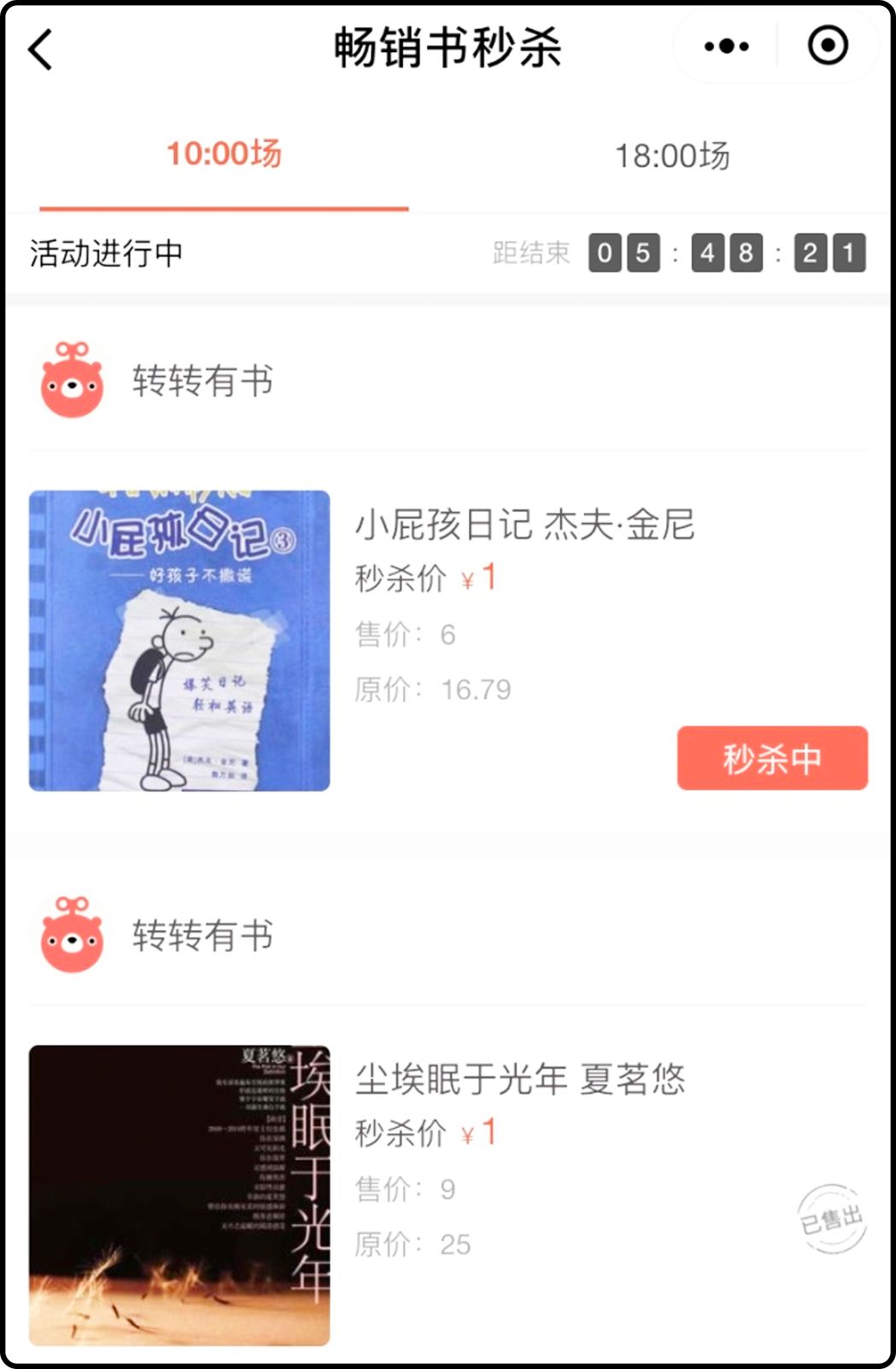 【转转】:价格一般为原价的3折,每天有两波1元秒杀、29元三本包邮、5元专区