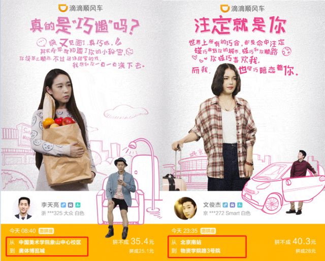 在以后的宣传中,滴滴又多次以男女交友为主题,推出“注定就是你”“真的是巧遇吗”“10分钟换来一辈子”等广告。文案中充满“约、喜欢、暗恋、喜欢”等词,无不在暗示情与爱的主题。