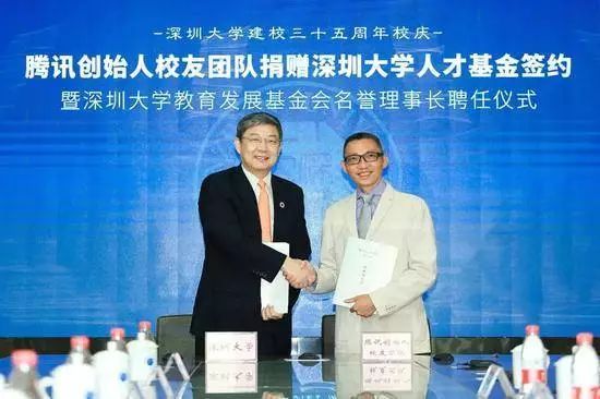 据腾讯官方公众号消息,今天是深圳大学35周年校庆。腾讯四位创始人马化腾、张志东、陈一丹、许晨晔,都是深圳大学89级学生,他们以腾讯创始人校友团队的名义,联合向母校深圳大学捐赠3.5亿元人民币,共同发起设立深圳大学人才基金,所捐款项将作为深圳大学人才基金的首笔启动资金。