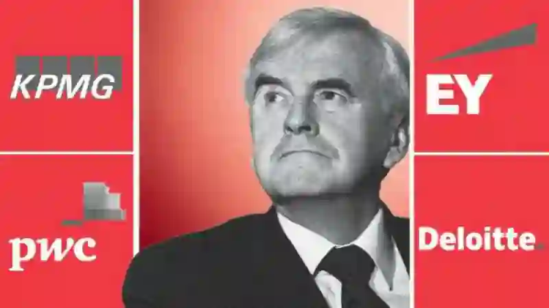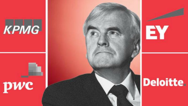 据《金融时报》报道,英国影子大臣John McDonnell透露称,英国工党考虑分拆四大会计师事务所。目前,四大(毕马威、普华永道、安永和德勤)已经垄断了全球超过90%上市公司的审计业务,在英国和美国市场,这一比例甚至高达99%。而众所周知,绝对的垄断就会导致绝对的腐败。自去年以来,与四大有关的丑闻层出不穷,似乎正引发全行业的“系统性风险”。
