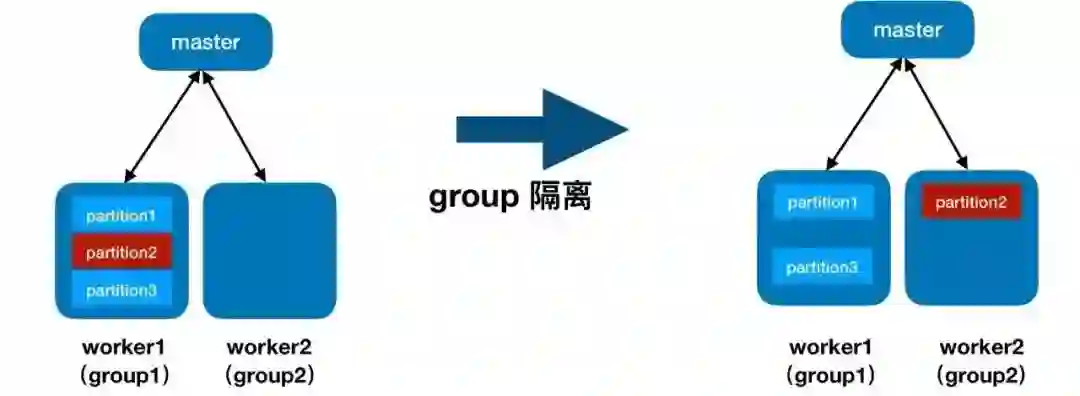 group:group是隔离partition的主要手段,举个例子:它一般是先将一批worker加入到指定group中,然后将instance、table或者partition也加入到该group,完成这些操作后,系统会将属于指定group的instance、table的所有partition和显示指定group的partition都固定调度在该group的worker上,达到隔离的目的。说简单一点就是我给一些用户分配指定的机器,这些机器专门给这些用户服务。