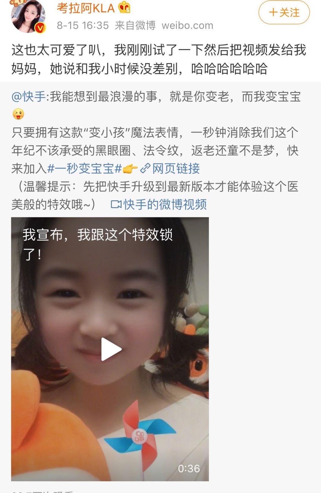 另一方面,上线短短几天时间,「变小孩」功能就已经获得了快手平台之外更多网红、明星和网民群体的追捧。