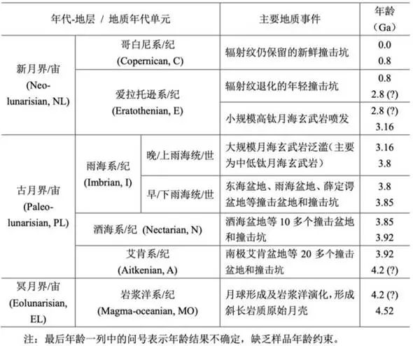 月球地质年代划分表。图片来源:中科院地球化学研究所