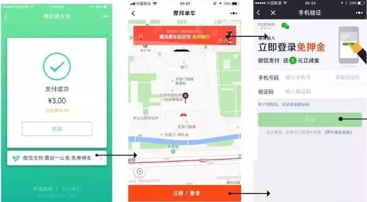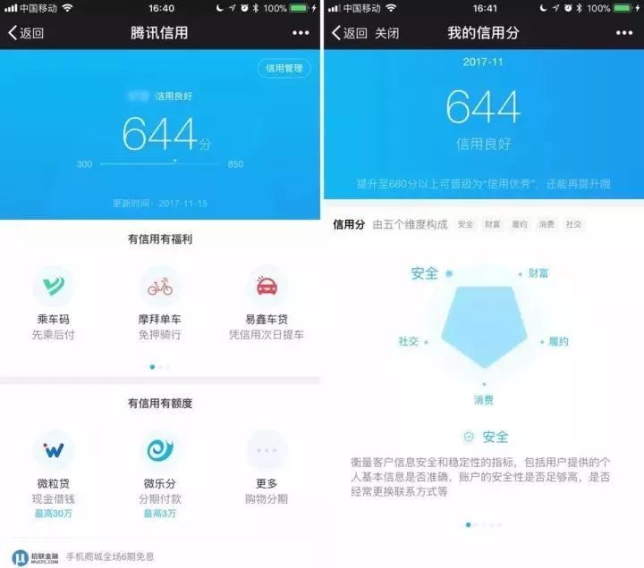 第二次是 11 月 16 日,「腾讯乘车码」小程序在广州地铁全面开通,腾讯信用宣布接通免押金骑摩拜等功能。这是腾讯信用正式在微信端发布,也是首次大规模正式亮相。